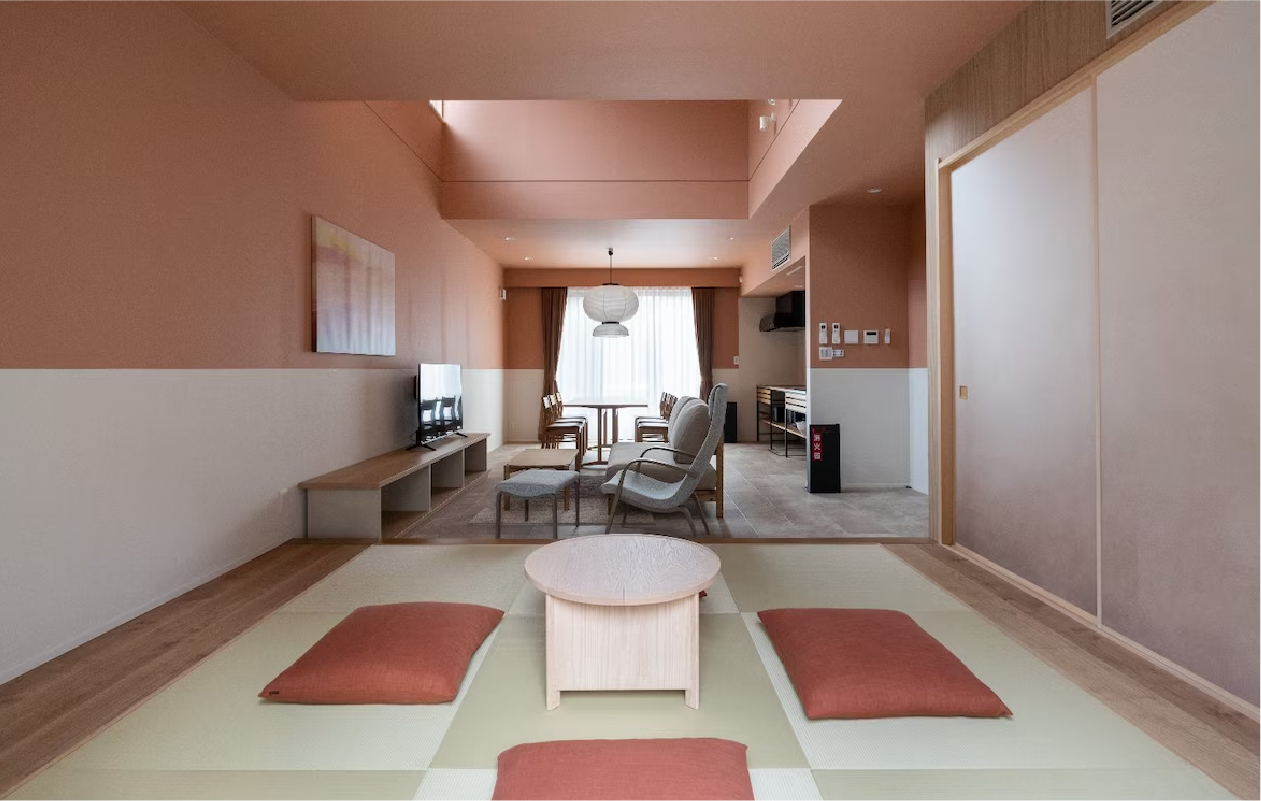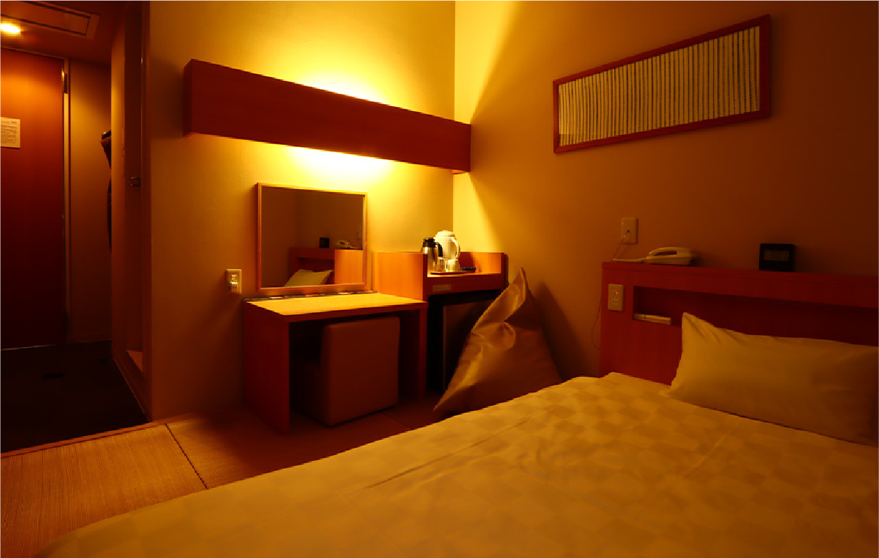 コンセプトホテル和休は、新しいスタイルのビジネスホテルです。玄関で靴を脱ぎ、畳のお部屋で過ごす。