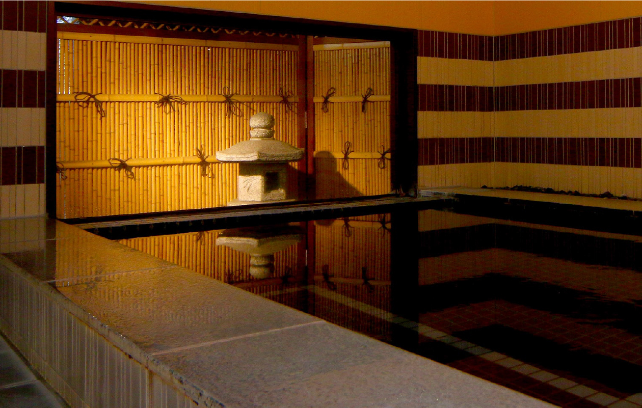 温泉施設には、石造りの「萬葉の湯」と檜造りの「竹林の湯」の2つの大浴場があり、いずれも源泉かけ流しの天然温泉を楽しめます。これらの露天風呂は、日替わりで男女入れ替え制となっており、異なる趣の庭園を眺めながら湯浴みを堪能できます。