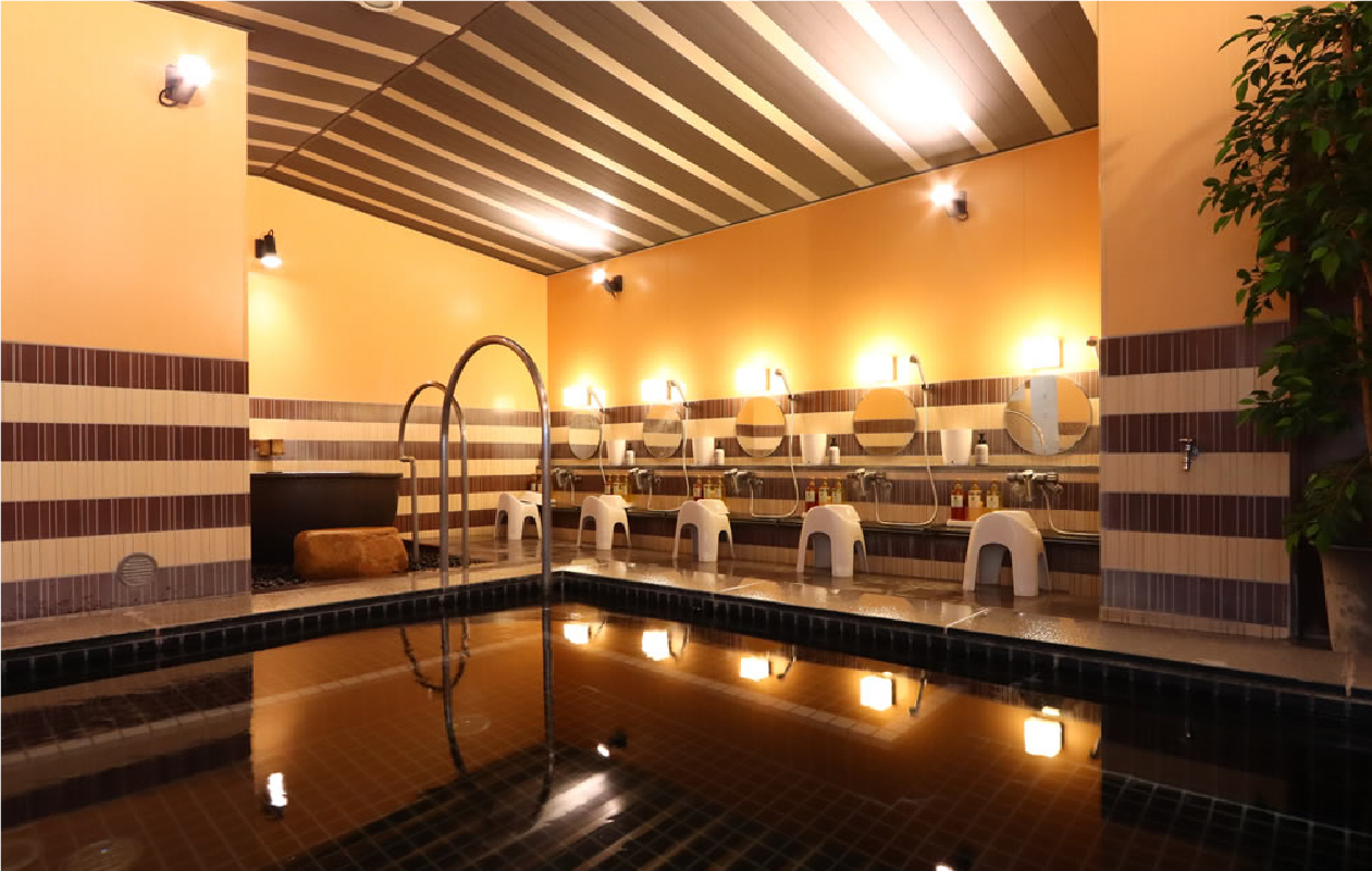 お風呂は大きな浴槽で、ゆっくり湯に浸かるひと時をお過ごしください。またご提供している朝食は定番メニューに加え、地元食材や旬の食材を使用した心あたたまる和食の朝食をバイキングスタイルでご用意しております。